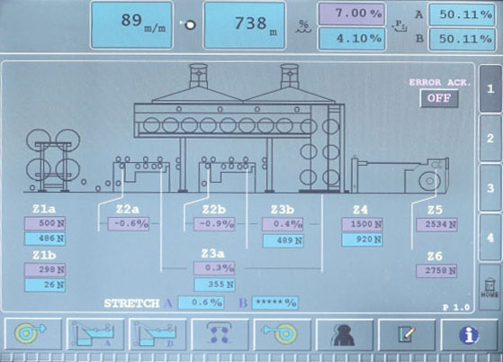 - Automatic tension control in different zones through PLC (Programmable Logic Control